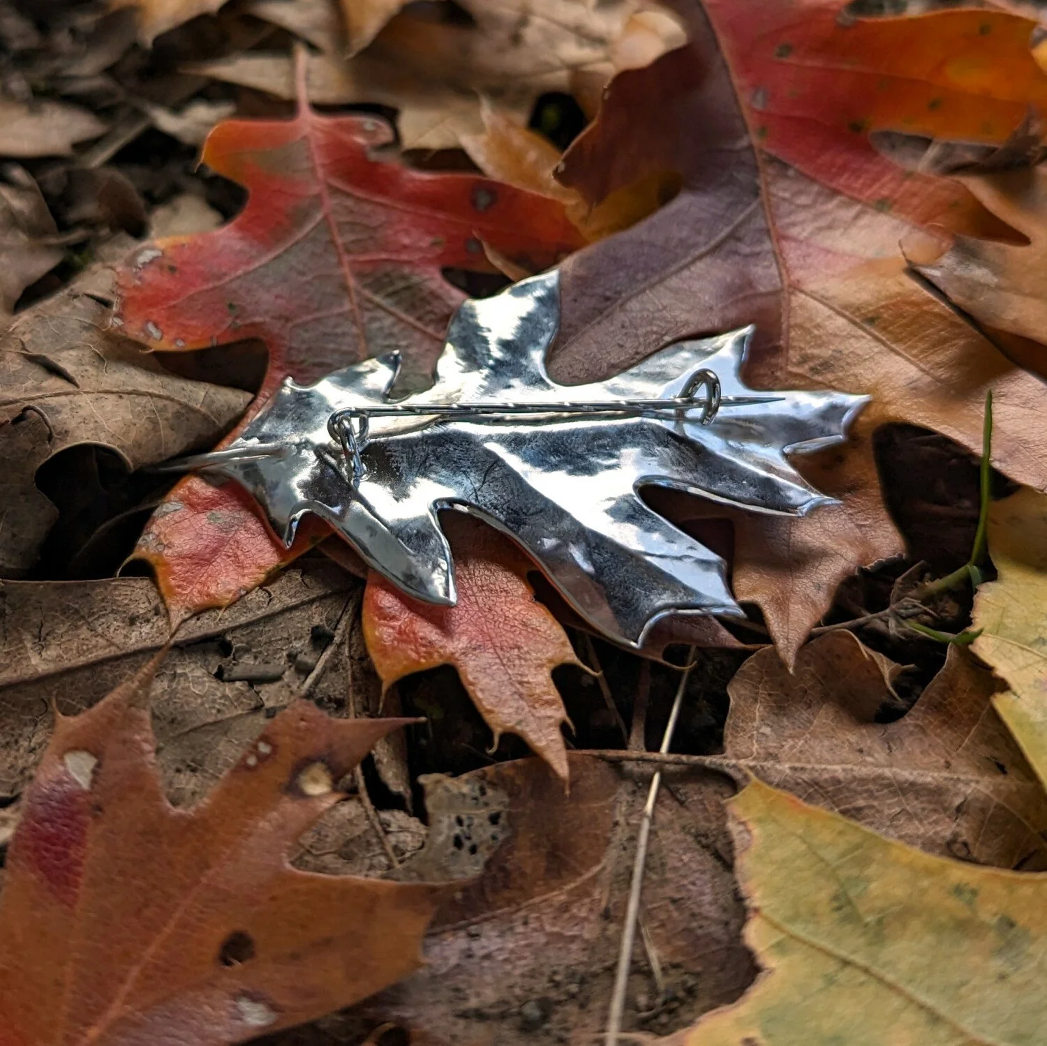 Larkin shaped these silver and copper oak leaf clothing pins using leaves from the forest floor around our southern Oregon home as models. Some contain bug bites or are slightly oddly formed— each is unique, just like their organic counterparts!