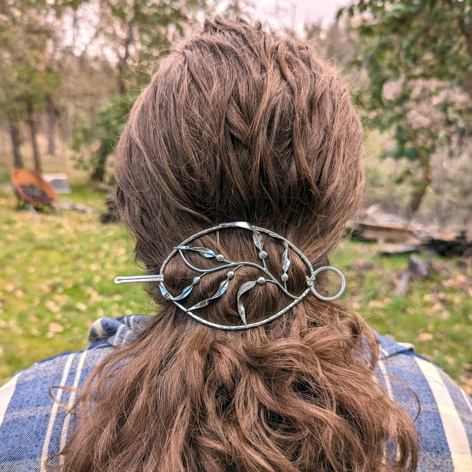 As with all of this style of hair clips, they are also well-suited to be used as clothing pins-- they beautifully dress up a knit hat, scarf, shawl, or cloak!